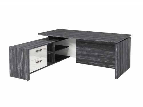 Столешница, бок стола и бок тумбы выполнены из ЛДСП толщиной 38 мм. Цвет - "Древесина Графит". Кромка 2 мм.