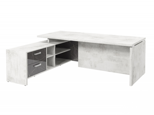 Стол с опорной тумбой FI-121L.GG (L) Хромикс белый/Камень Пьетра Гриджиа черный
