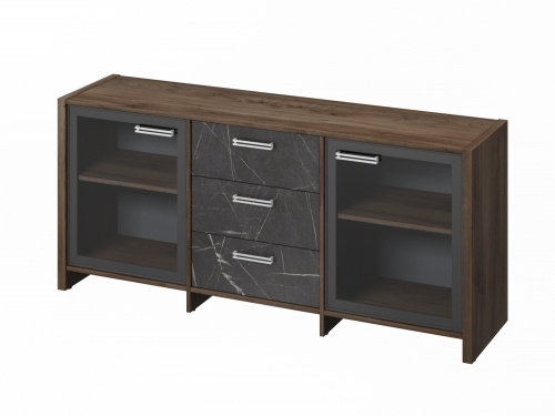 Элемент каталога Тумба трехсекционная с 2 дверьми FI-13-02.G. Орех Пацифик Табак/Камень Пьетра Гриджиа черный [1120]