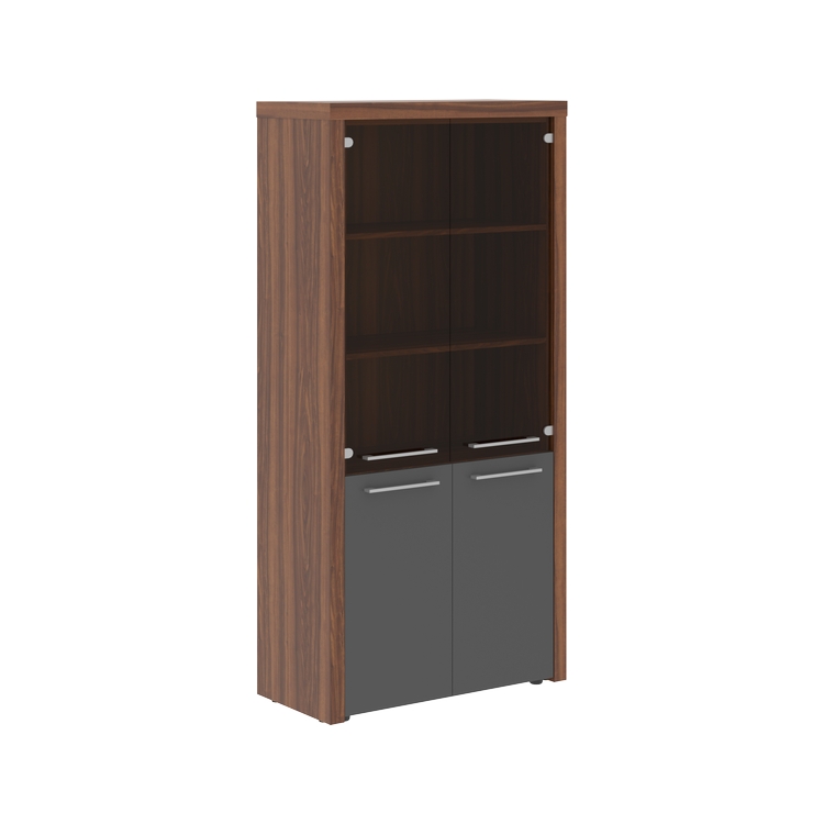 В модельном ряде представлены следующие предметы мебели: столы – прямые и угловые, с ящиками и без; шкафы – низкие, средние и высокие, с глухими и стеклянными дверьми; гардеробы, тумбы и брифинг-приставки.